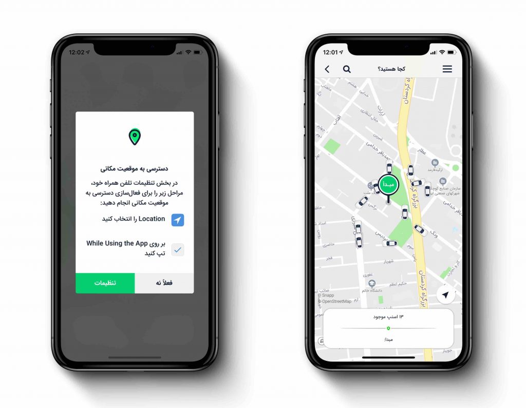 پس از ورود به حساب کاربری با نقشه اسنپ مواجه خواهید شد. لطفا دقت داشته باشید که در این قسمت مرورگر از شما درخواست دسترسی به مکان جغرافیایی‌تان را می‌دهد. برای عملکرد صحیح در یافتن مبدا دقیق، توصیه می‌کنیم با این دسترسی موافقت کنید.