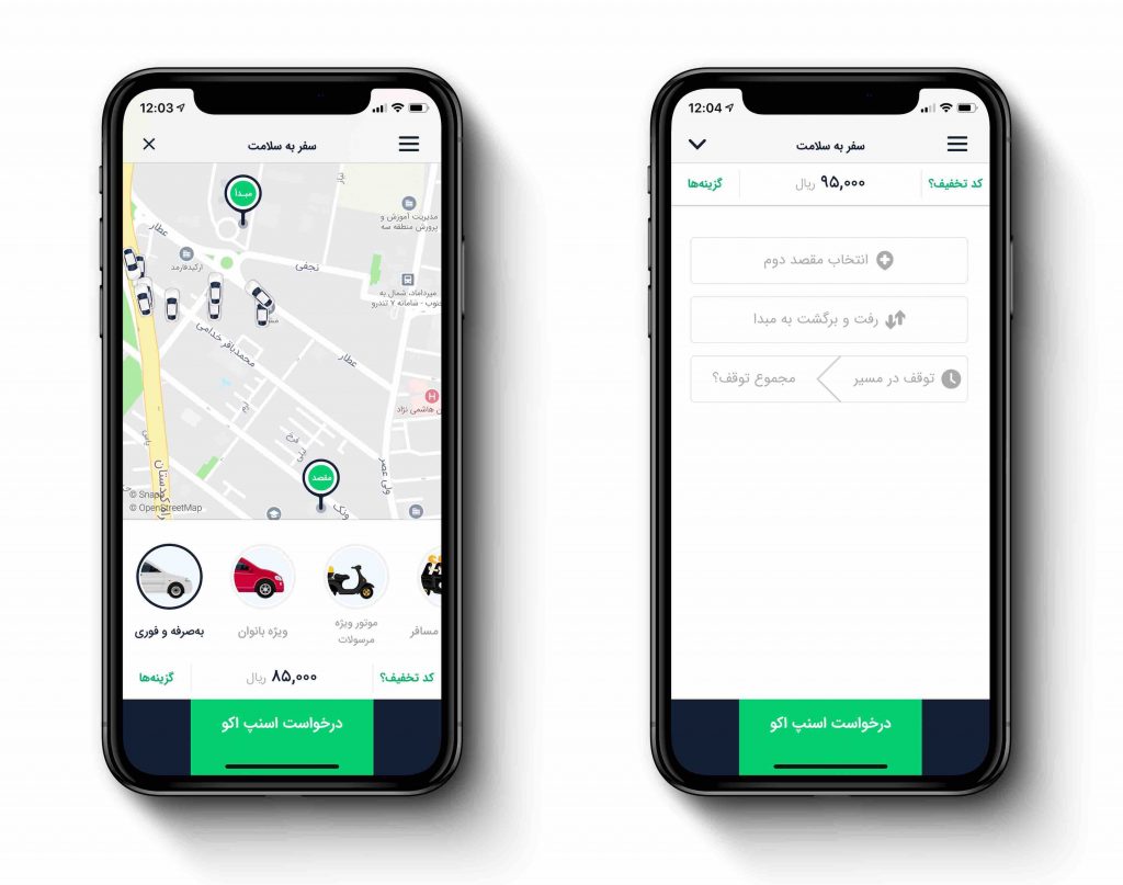 با ثبت مبدا و مقصد، سرویس‌های متنوع اسنپ و همچنین هزینه سفر نمایش داده می‌شود. در صورت نیاز می‌توانید با مراجعه به قسمت گزینه‌ها برای سفر خود مقصد دوم، رفت‌وبرگشت و یا توقف در مسیر مشخص کنید. روال استفاده از کد تخفیف در وب‌اپلیکیشن اسنپ مانند اپلیکیشن موبایل است. در گوشه سمت چپ گزینه کد تخفیف را انتخاب و کد خود را وارد کنید تا از هزینه سفرتان کسر شود.