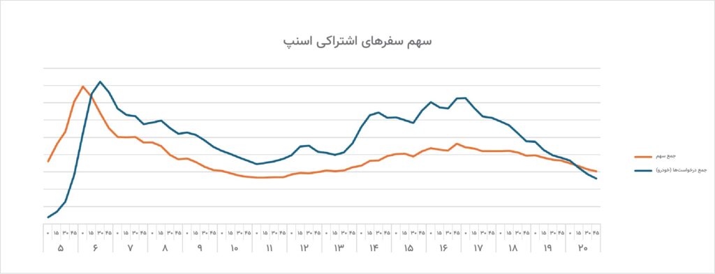 نمودار تجمیعی سهم سفرهای اشتراکی و تعداد کل سفرهای روزانهی پایتخت با ناوگان اسنپ